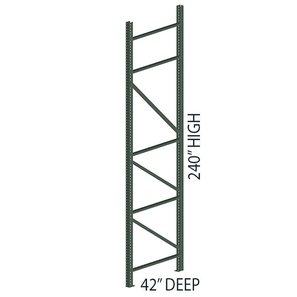 Upright capacity = 25,177 lbs. per frame based on maximum unsupported length, which is the measurement of the distance between the floor and the top of the first beam or the maximum spacing between beams.